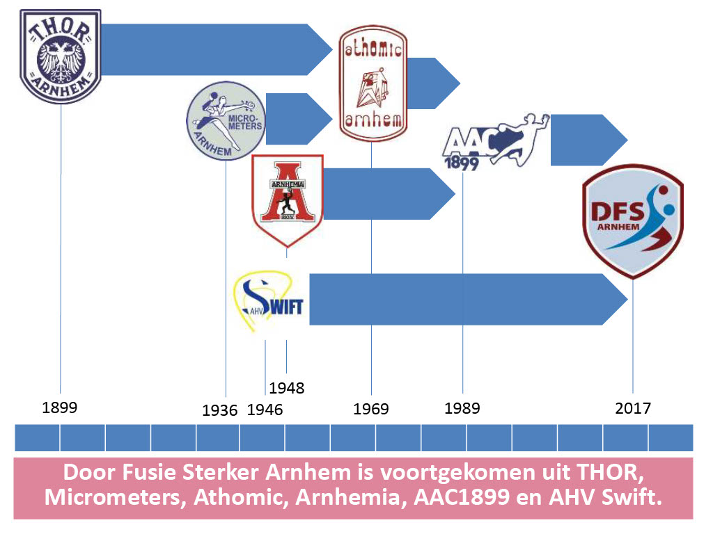 Zowel Swift als AAC1899 zagen dat het ledenaantal van terugliep, dat er minder kader kwam en dat zij een wederzijdse aanvulling konden zijn waardoor een handbalvereniging kon ontstond met zowel voor de jongens/mannen als voor de meisjes/vrouwen teams in elke leeftijdscategorie. Onder begeleiding van het sportbedrijf Arnhem c.q. de Arnhemse Adviesbrigade werden in 2017 de fusiebesprekingen afgerond met de oprichting van de nieuwe vereniging Door Fusie Sterker Arnhem (DFS Arnhem). DFS Arnhem kent in 2024: